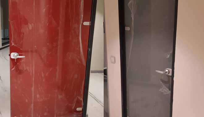 در مدلهای لمینت، لایهای از پلاستیک ضدضربه (PVB – Polyvinyl Butyral) بین دو شیشه قرار میگیرد تا در برخورد خرد نشود. این ترکیب در محیطهای پرتردد ایمنی بیشتری میدهد. در پایان، نصابها فریم و یراقآلات را با تراز دقیق تنظیم میکنند تا درب روان و بیصدا باز و بسته شود. انتخاب رنگ فریم و نوع شیشه هماهنگ با دکور فضا انجام میشود و نتیجه نهایی، دربی زیبا، مقاوم و بادوام است.