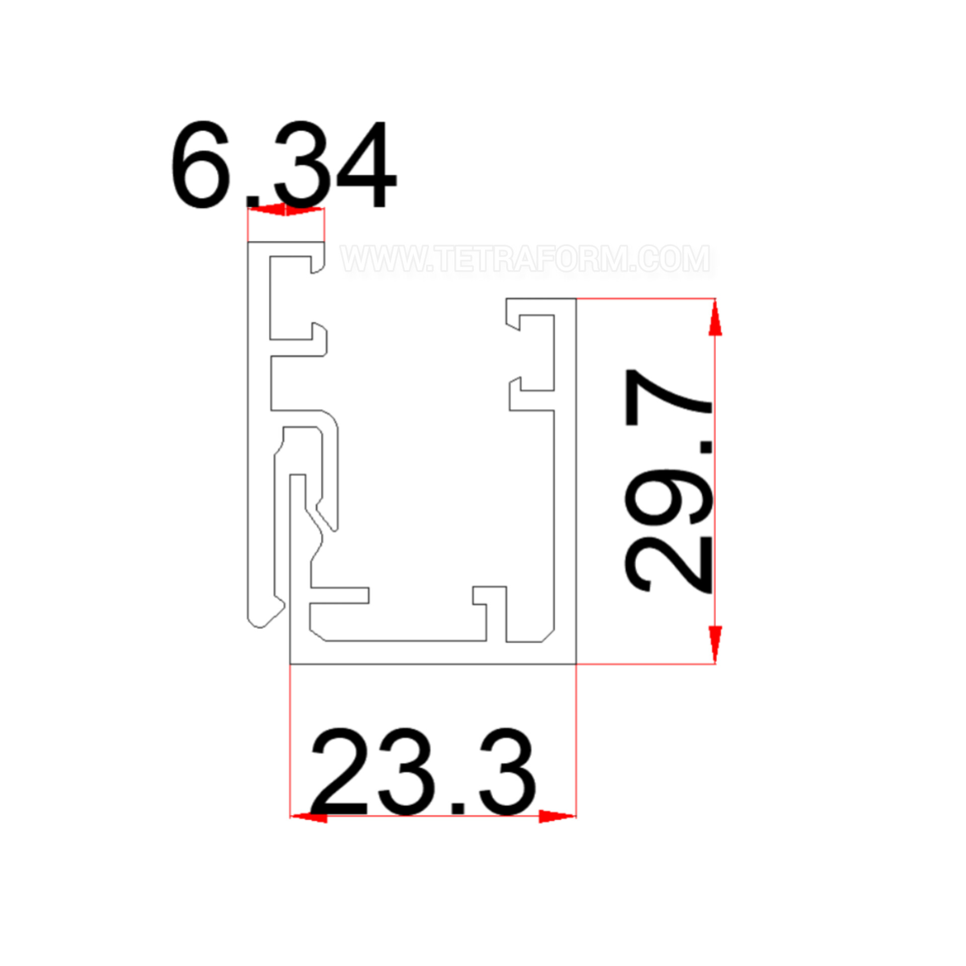 پروفیل پارتیشن شیشه ای ثابت 6x23x29